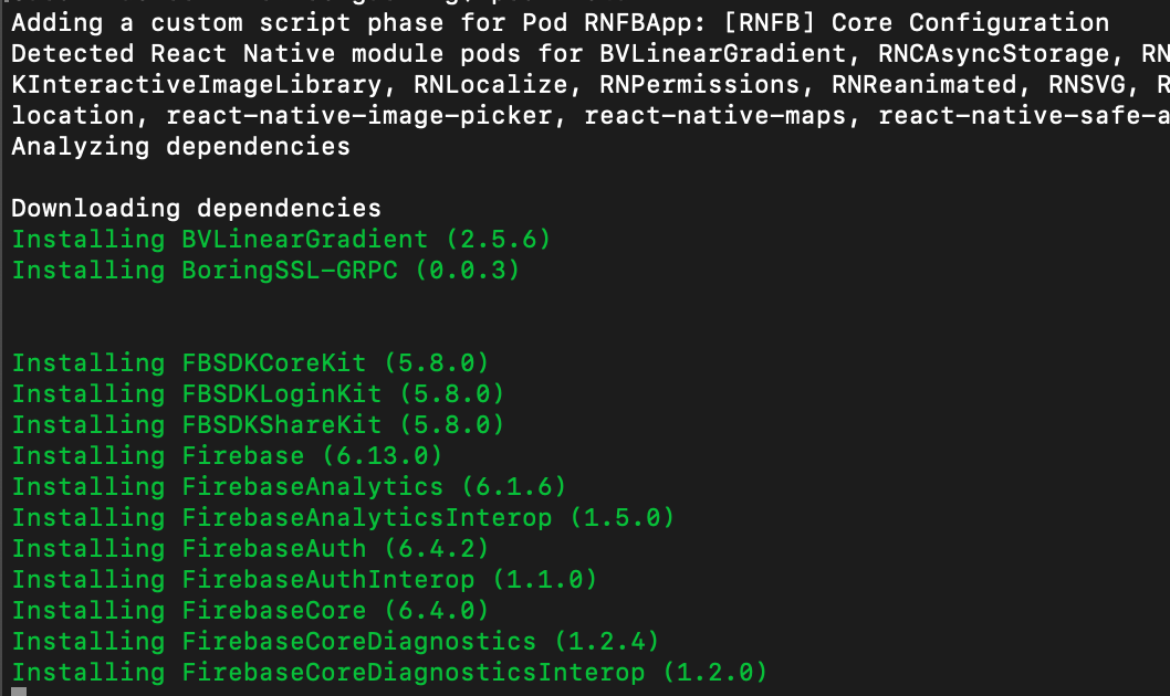 Adding a custom script phase for Pod RNFBApp: [RNFB] Core Configuration