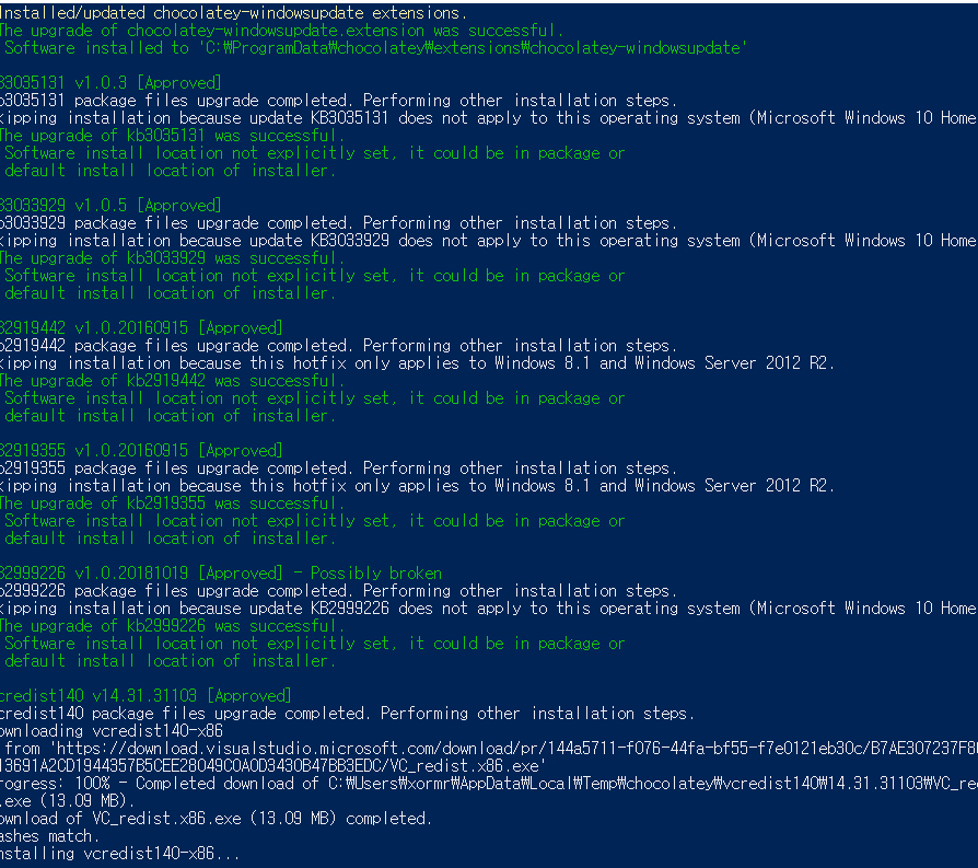 파워쉘에서 node 관련 프로그램들이 자동으로 설치된다.
