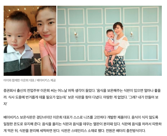 발명대회 상 받은 스타트업 제품 발열 유아식판
