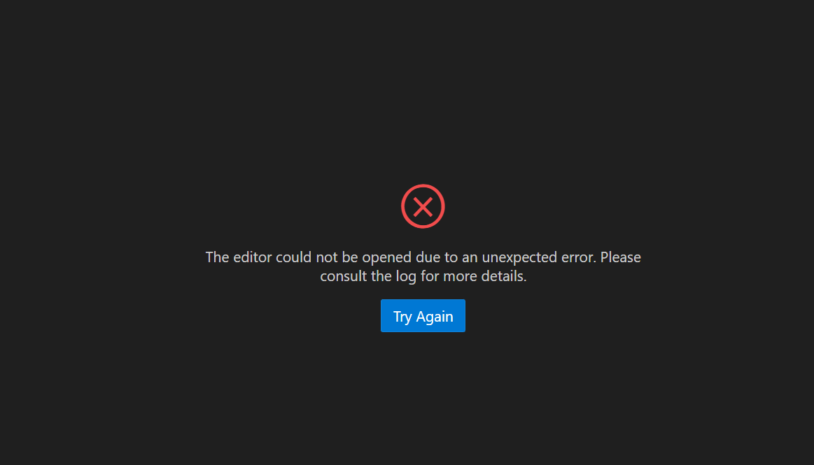 The editor could not be opened due to an unexpected error. Please consult the log for more details.